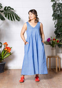 This beautifully simple maxi dress offers two neckline options, a classic scoop or a soft v-neck, so you can choose your preference. Side pockets add practicality, and the gathered skirt falls to the lower calf.