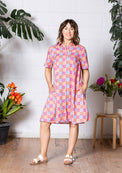 The relaxed A-line shape, elbow-length sleeves, and button-through front keep dressing easy. Wear it belted or loose, as a dress, over pants, or throw it on open for a playful shacket vibe. And yes… she has pockets!