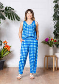 The roomy leg narrows softly at the ankle for a flattering finish, while the elastic waist and side pockets keep things practical and easy. Pair them with a relaxed tee or match them with your favourite Two + Lou top for maximum comfort and personality.